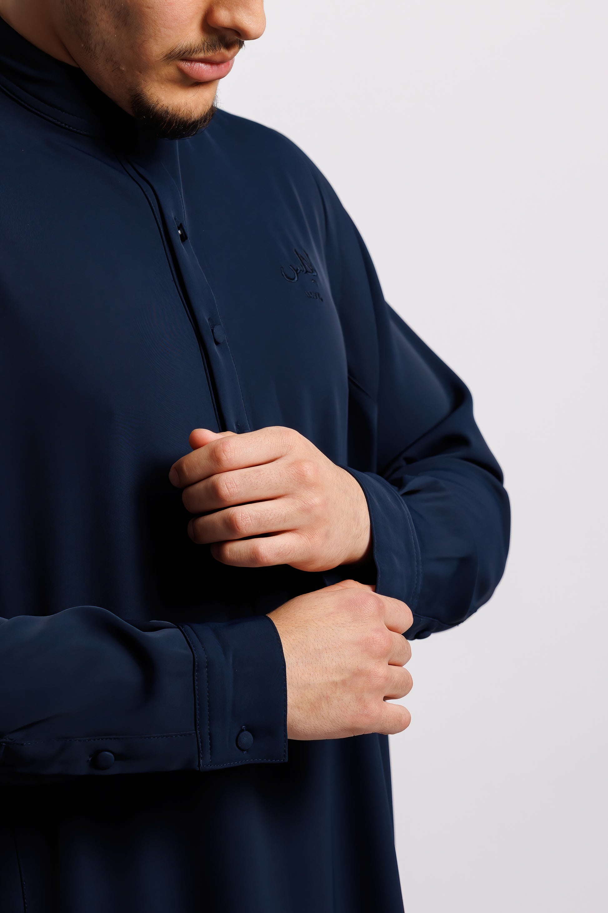This qamis brings together tradition and elegance with a clean, modern fit. Made from the signature fabric, it’s lightweight, smooth to the touch, and drapes effortlessly across the body.